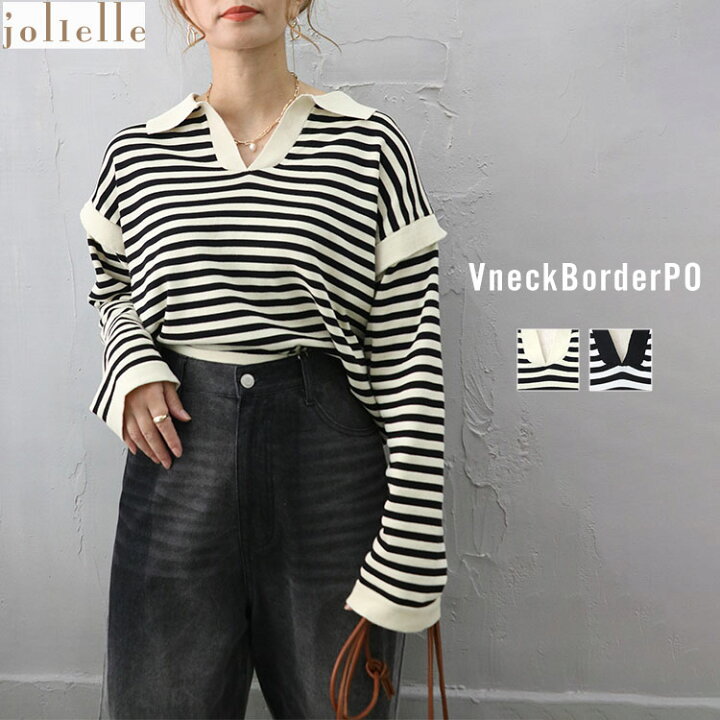 楽天市場 衿付きvネックボーダーpo ボーダートップス 襟付きトップス ニット Vネック レディース 秋トップス プルオーバー ハンサム 大人っぽ 韓国 コーデ 韓国ファッション ママコーデ お出掛け 公園コーデ プチプラ 30代 40代 50代 Jolielle Jolielle ジョリエル